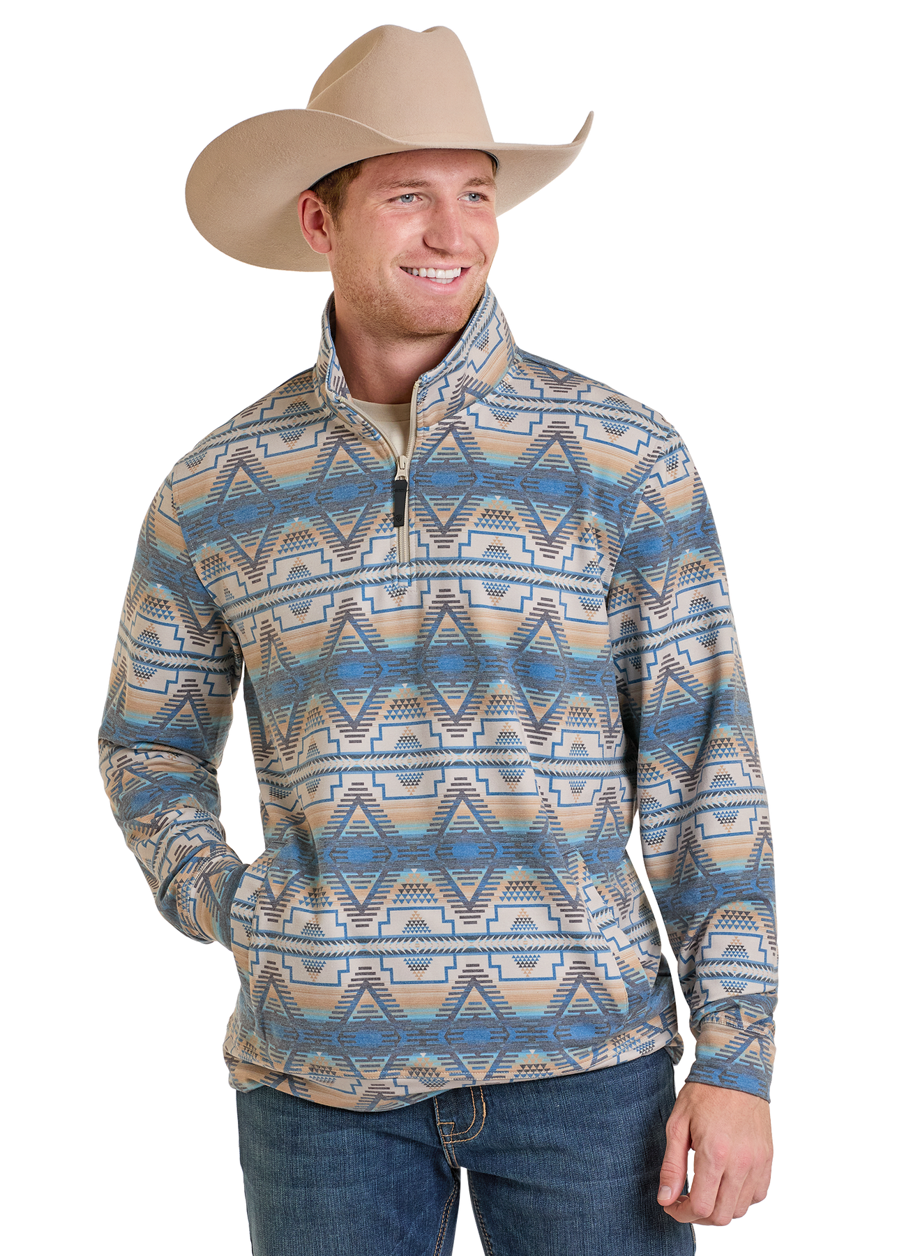 Panhandle Mens Blue Aztec Pullover