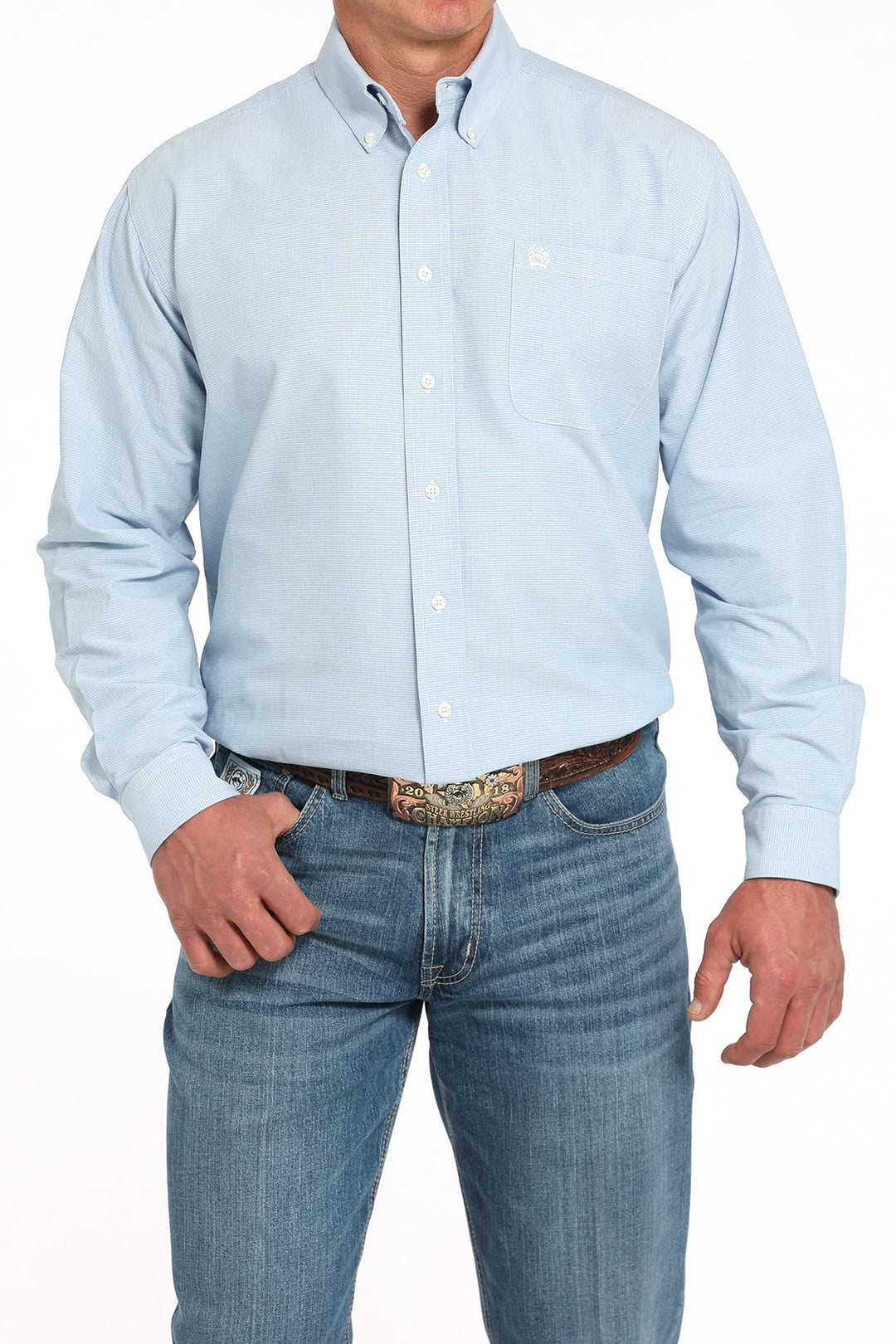 Cinch Mens Light Blue Long Sleeve Shirt