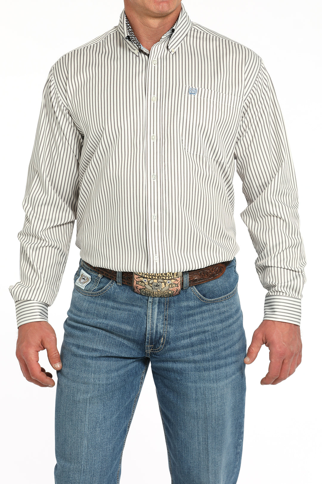 Cinch Mens Cream Striped Long Sleeve Shirt