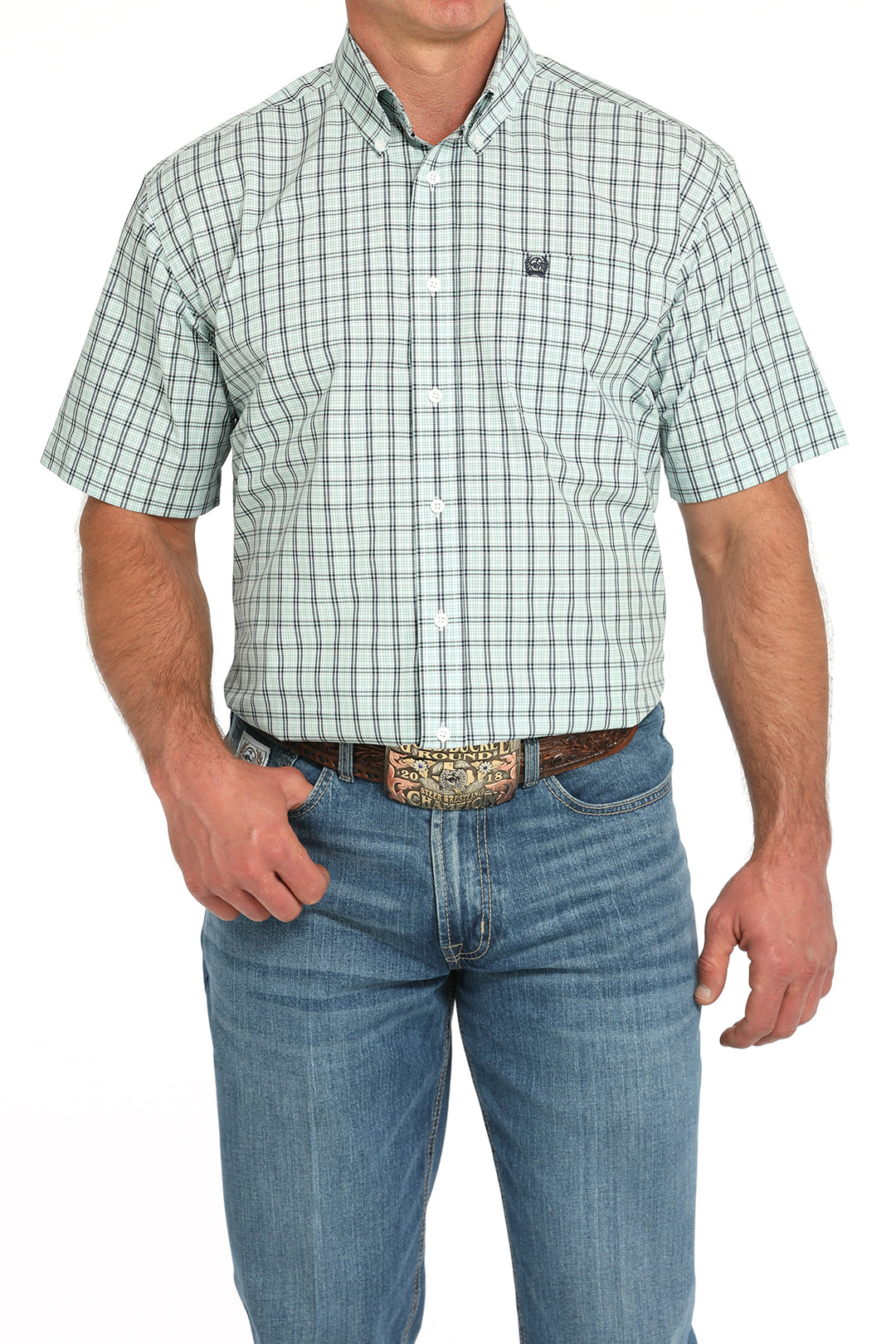 Cinch Mens Turquoise Plaid Short Sleeve Shirt