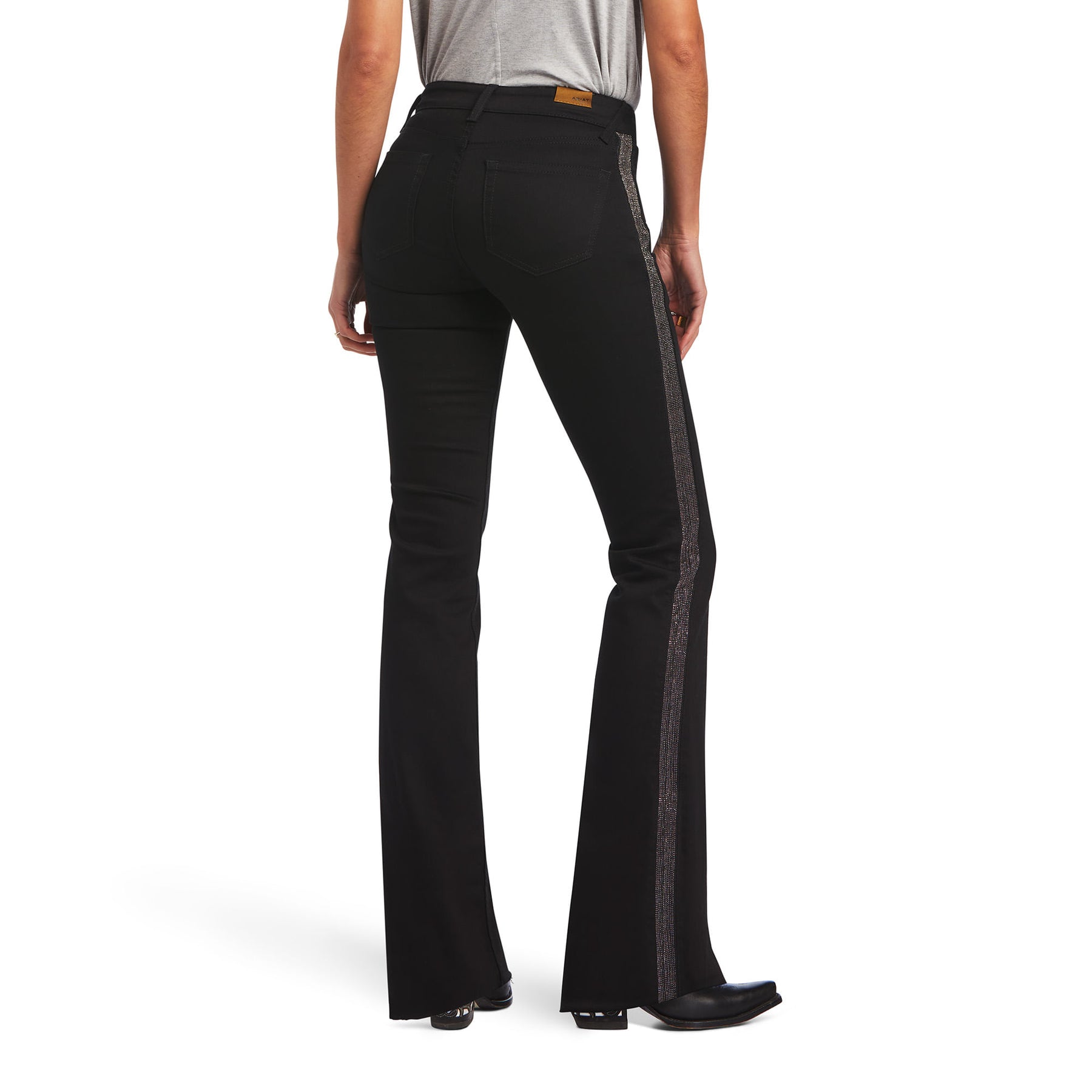 One part denim, all parts fun, with its shimmering side seams, this slim-fitting trouser is a head-turner from the grandstands to the after-party.