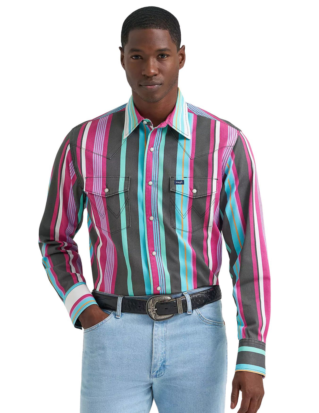 Wrangler Mens Americana Vintage-Inspired Brushpopper Western Snap Shirt