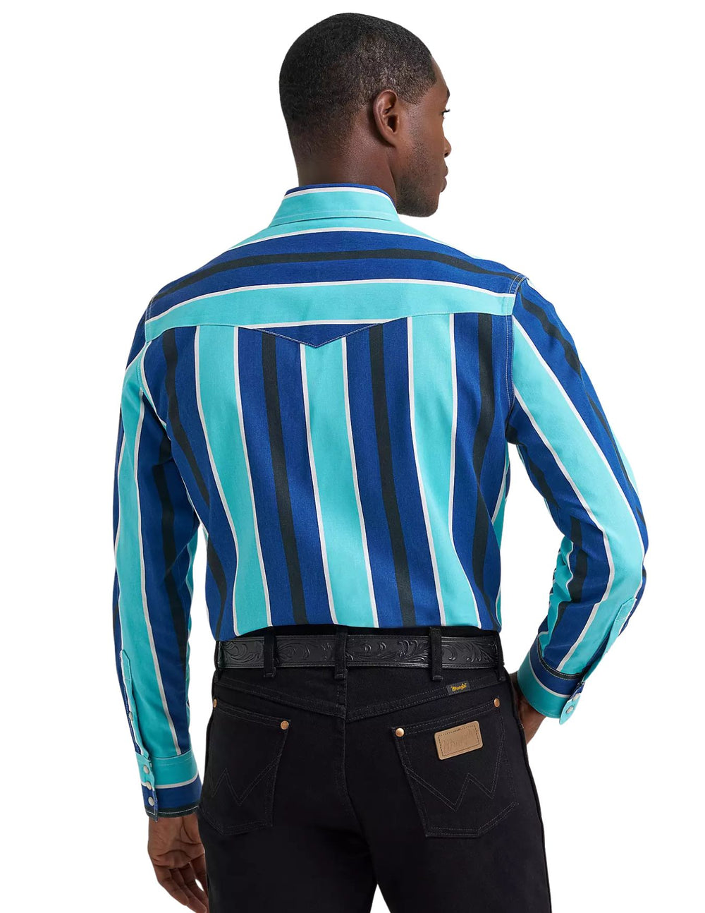 Wrangler Mens Cobalt Storm Vintage-Inspired Brushpopper Western Snap Shirt