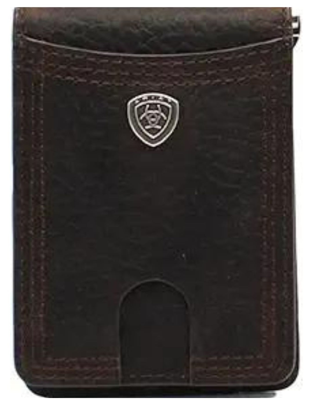 Ariat Rowdy Shield Logo Brown Money Clip Bifold Wallet