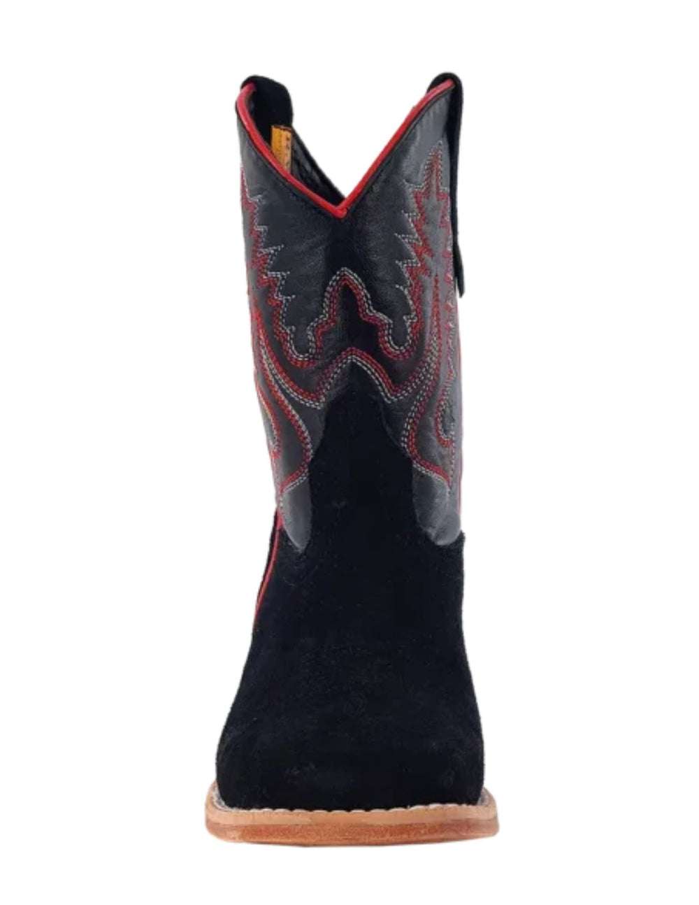 R.Watson Kids Black Roughout Wide Square Toe Boots