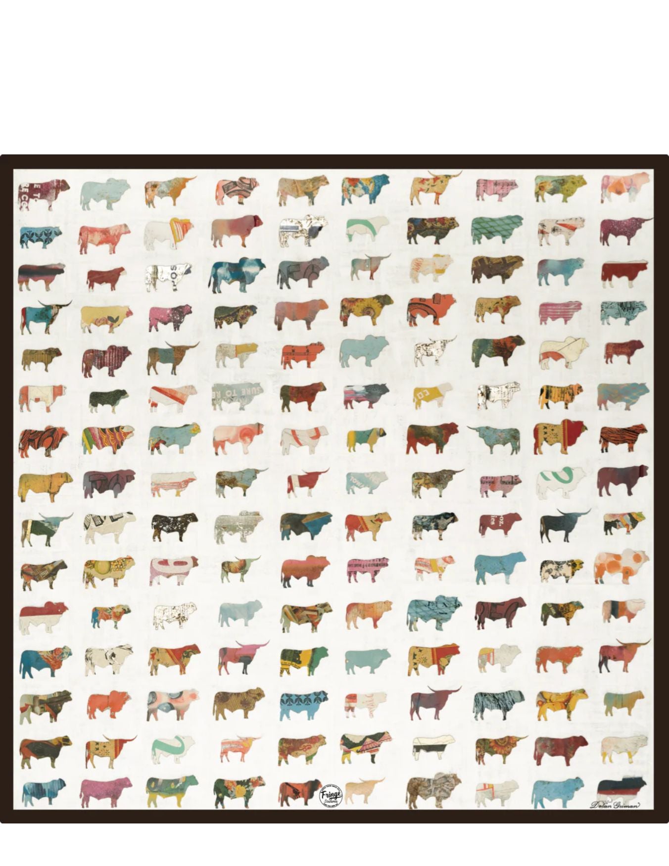 Big Pasture features a colorful herd of longhorns—each one crafted in the original artwork from repurposed objects full of texture and history. This scarf brings a playful yet meaningful nod to bygone eras, perfect for adding character to any modern ranch wardrobe.