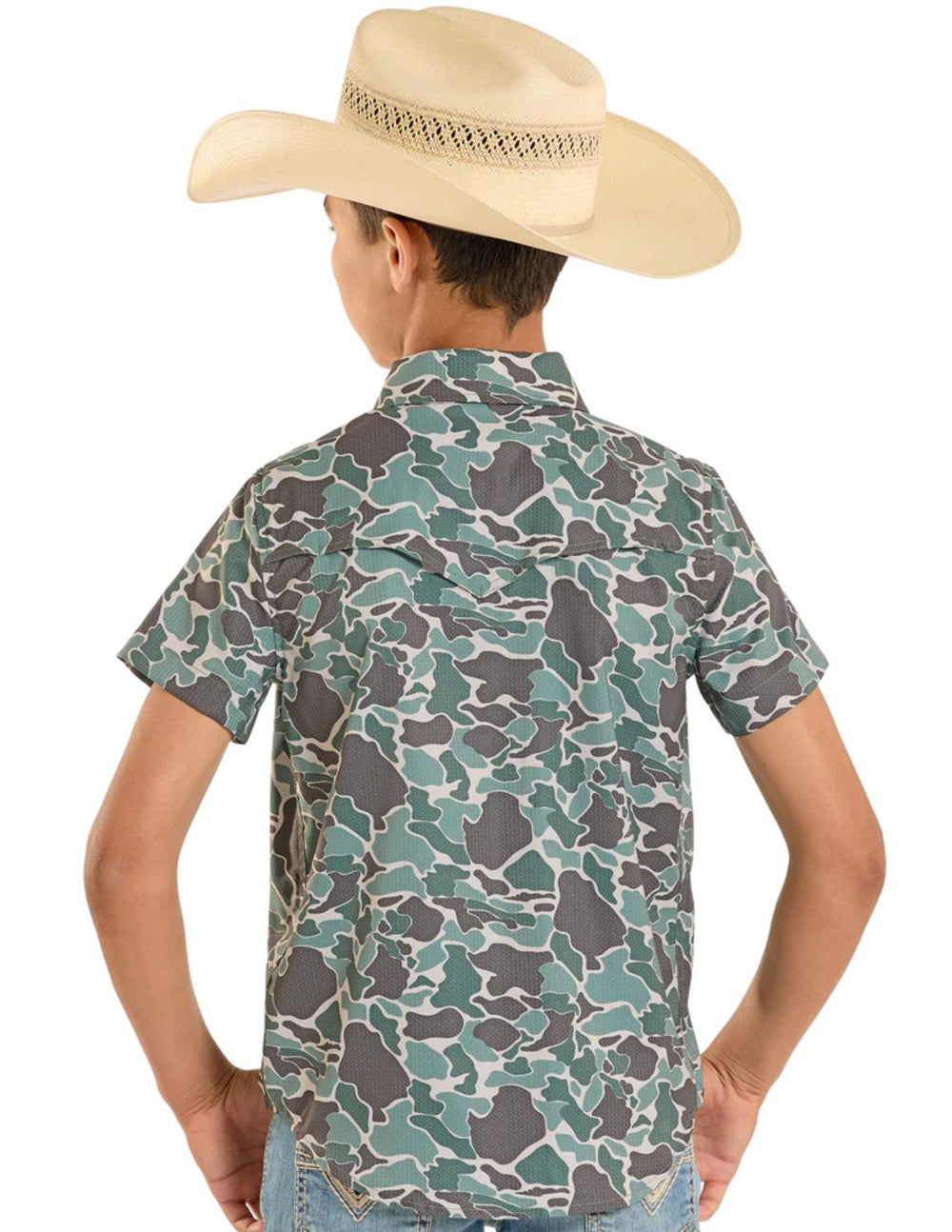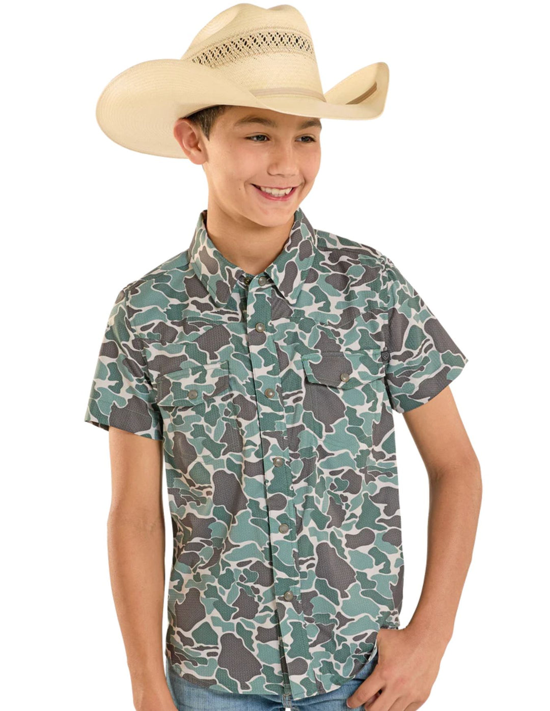 Panhandle Boys TEK Western Green Camo Short Sleeve Shirt