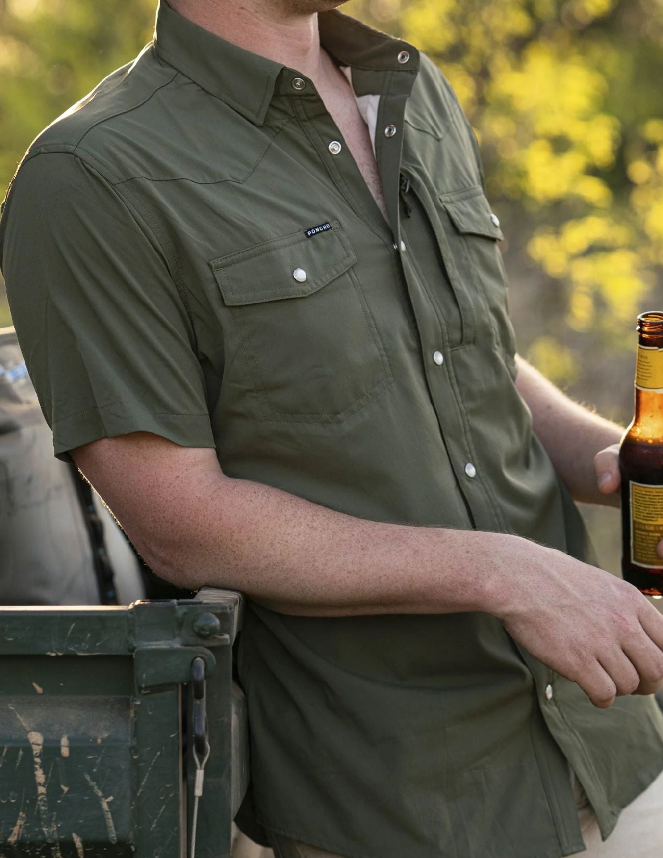 Our classic western shirts are made with the same breathable, lightweight, and quick-drying fabric you love from Poncho, so you’ll be comfortable until the cows come home. It’s got built-in sun-protection and tons of functional details to help while you’re working up a sweat. Plus, we’ve added pearl snaps and western styling, so you’ll be fit for any frontier.