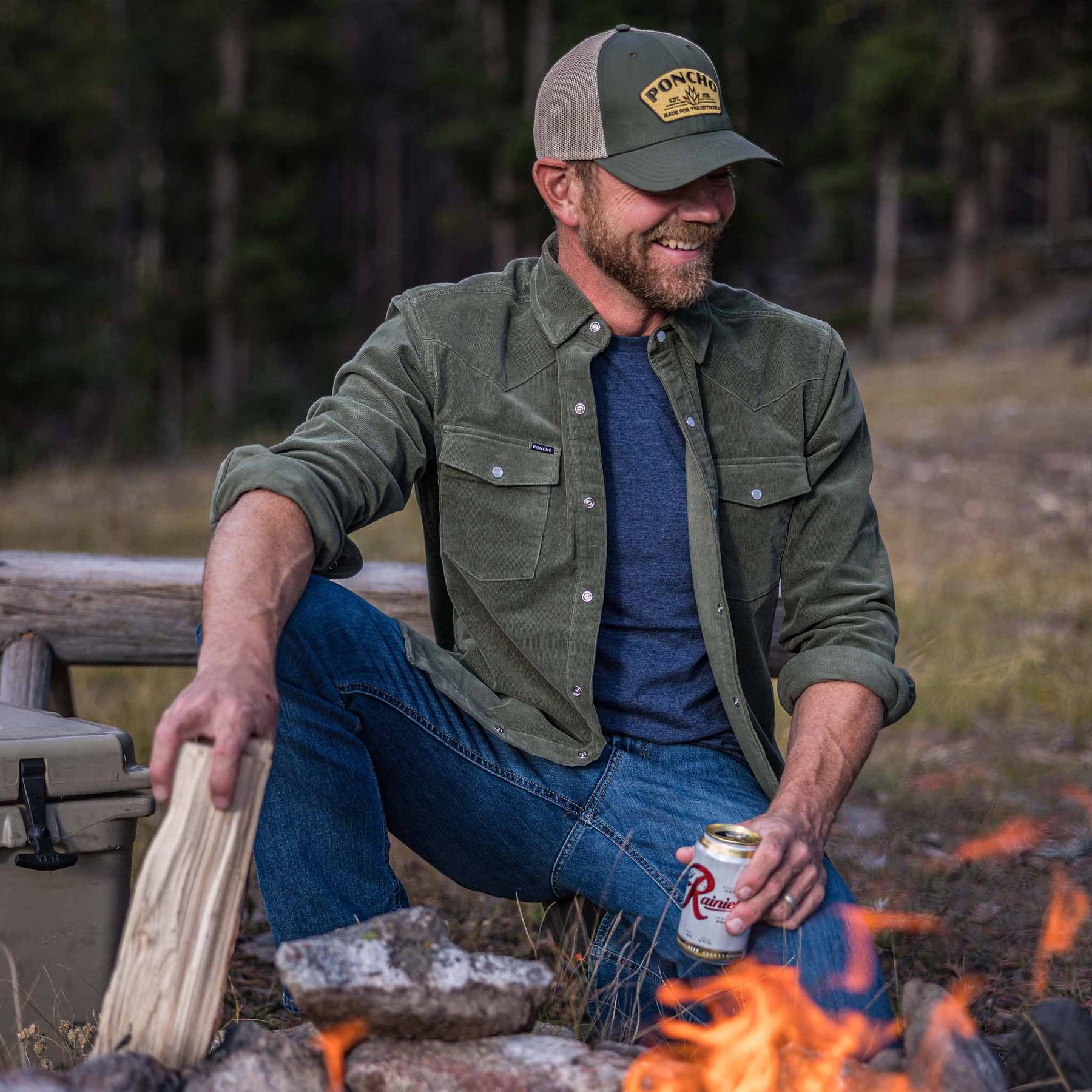 Poncho Mens The Zilker Olive Corduroy Shirt