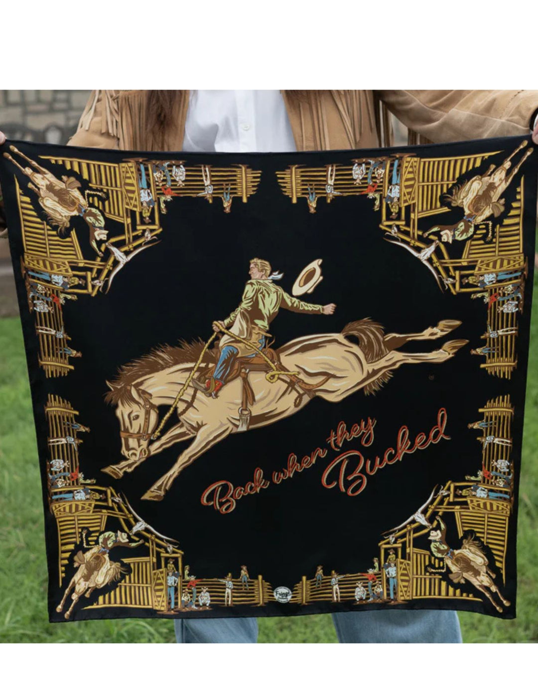 Fringe Scarves Womens Black Back When They Bucked Wild Rag