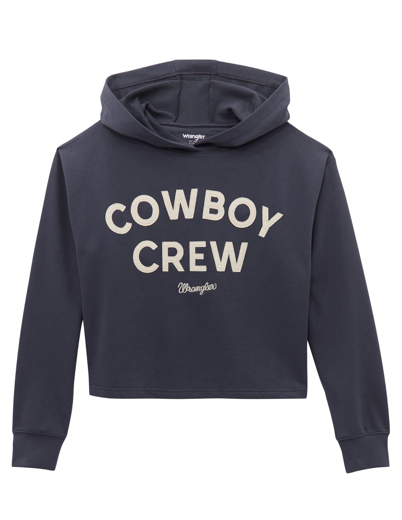 Cozy up the Wrangler® way with this cropped hoodie. It’s crafted from our signature terry, a brushed cotton blend for softness on days when comfiness is key. It features cuffed long sleeves, dropped shoulders, an open hem, and a boxy, cropped silhouette that’s a match made in heaven for anything high-waisted. Plus, you’ll have a Western-inspired graphic print to ground your outfit in cowgirl authenticity.